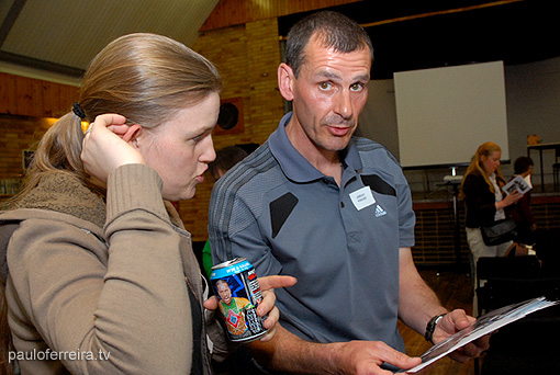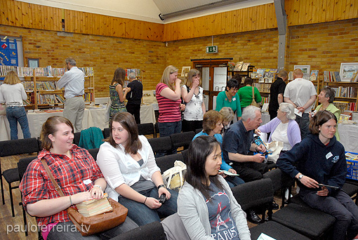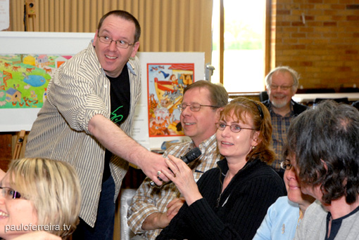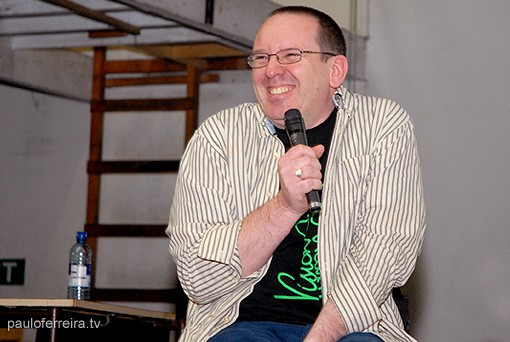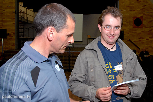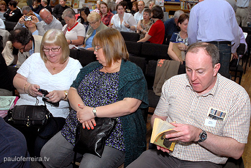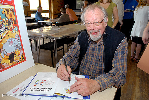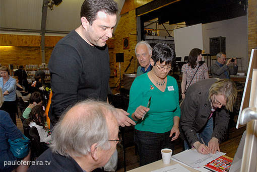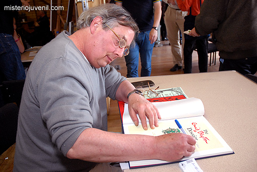 Tony Sumerfield a autografar o livro para o António (Alguém)