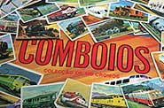 de Comboios 1976, 190 cromos, 16pp, 23,5x33cm - Foram editadas duas colecções com algumas diferenças. Esta tem uma imagem puzzle na página central para ser completado com os cromos. Na compra de uma pastilha elástica ofereciam o cromo |