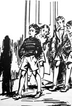 Aqui vai uma ilustração do 1º livro, da 1ª vez que os 4 primos de encontram (a Ana tinha 10 anos, a Zé e o David, 11, e o Júlio 12)